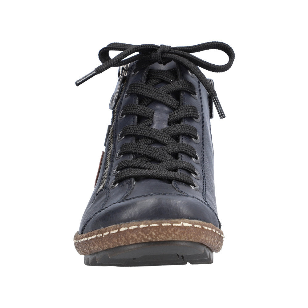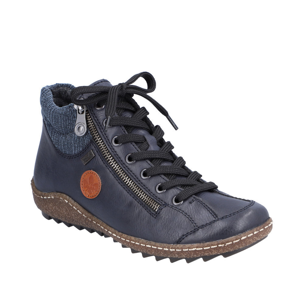 These appealing ankle boots from Rieker Antistress are crafted from quality synthetic materials and finished with a fleece lining for extra comfort whilst a ‘RiekerTex’ membrane offers shower resistance and excellent protection against the cold. Lightweight and flexible with a grippy rubber sole, so you can step out into the colder months with confidence. This gorgeous boot also benefits from a lace up front and a dual zip for ease and adjustability.