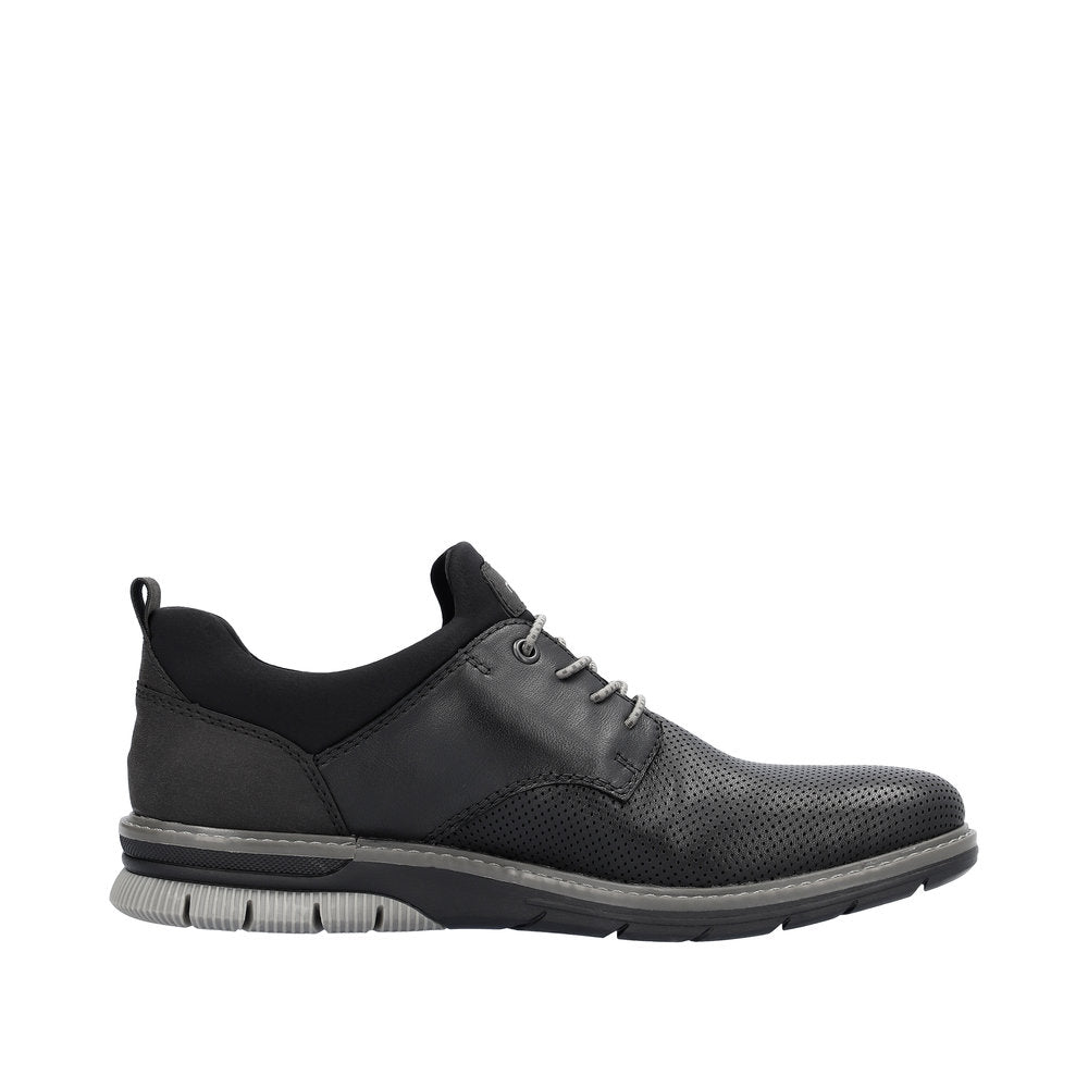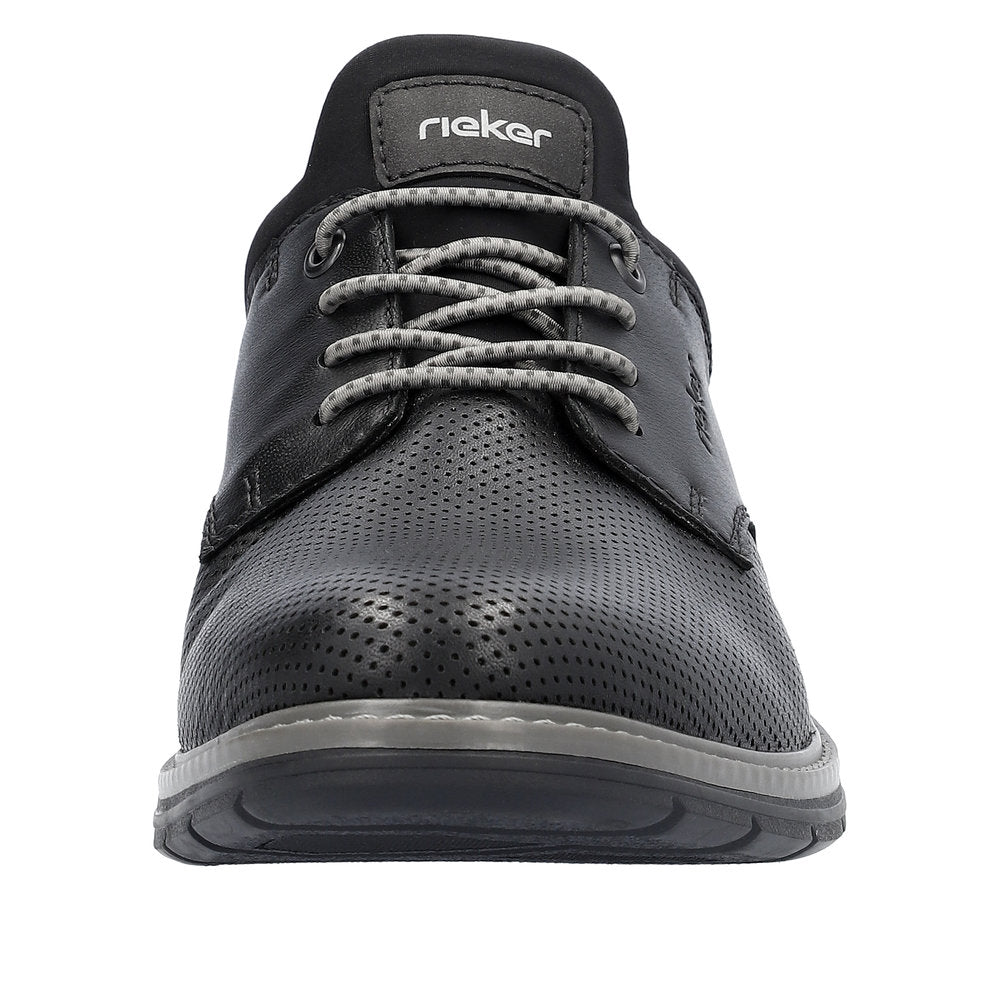 These black Rieker shoes are made of smooth leather and impress with their modern design and high comfort. In addition to the elastic band, the model has an elastic shaft collar, which makes it twice as easy to put it on. The shoe has a grippy sole that impresses with good traction for a secure step. Another plus is the extra soft cover sole. Thanks to the comfort width G 1/2, there is enough space in the forefoot area.