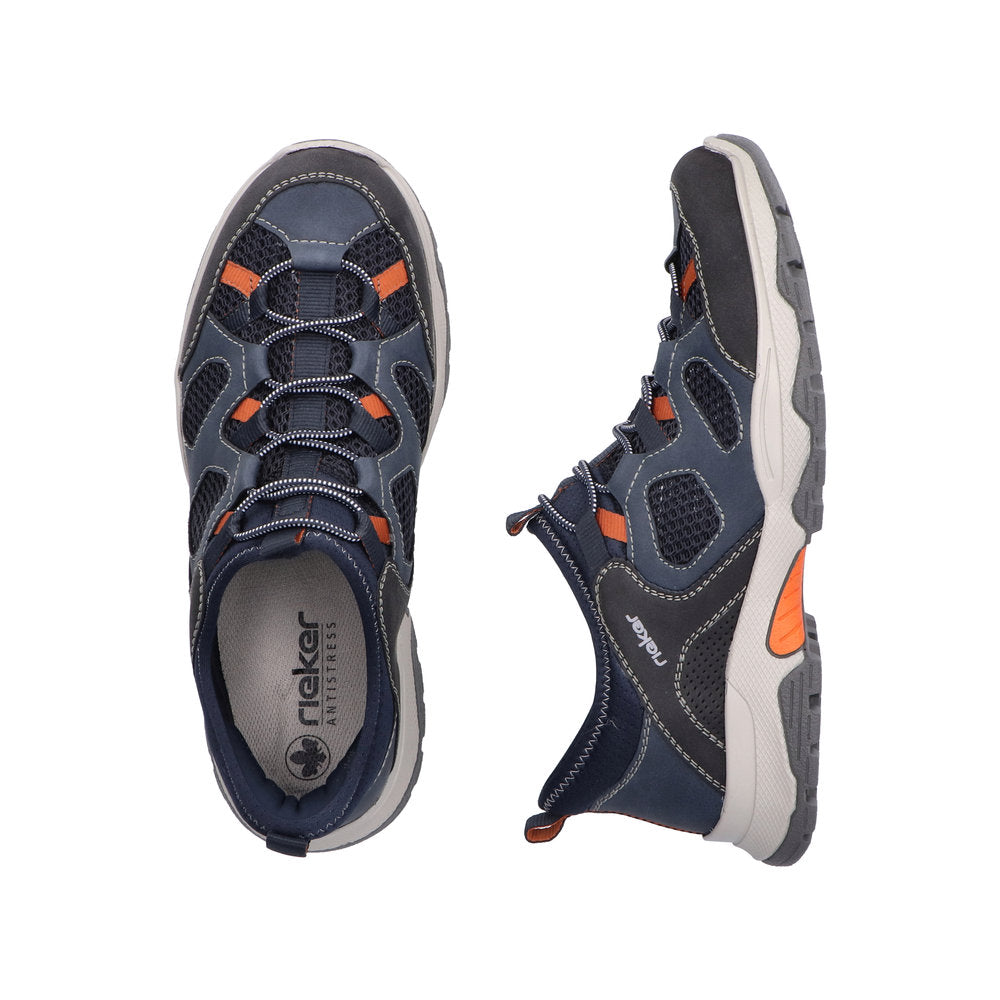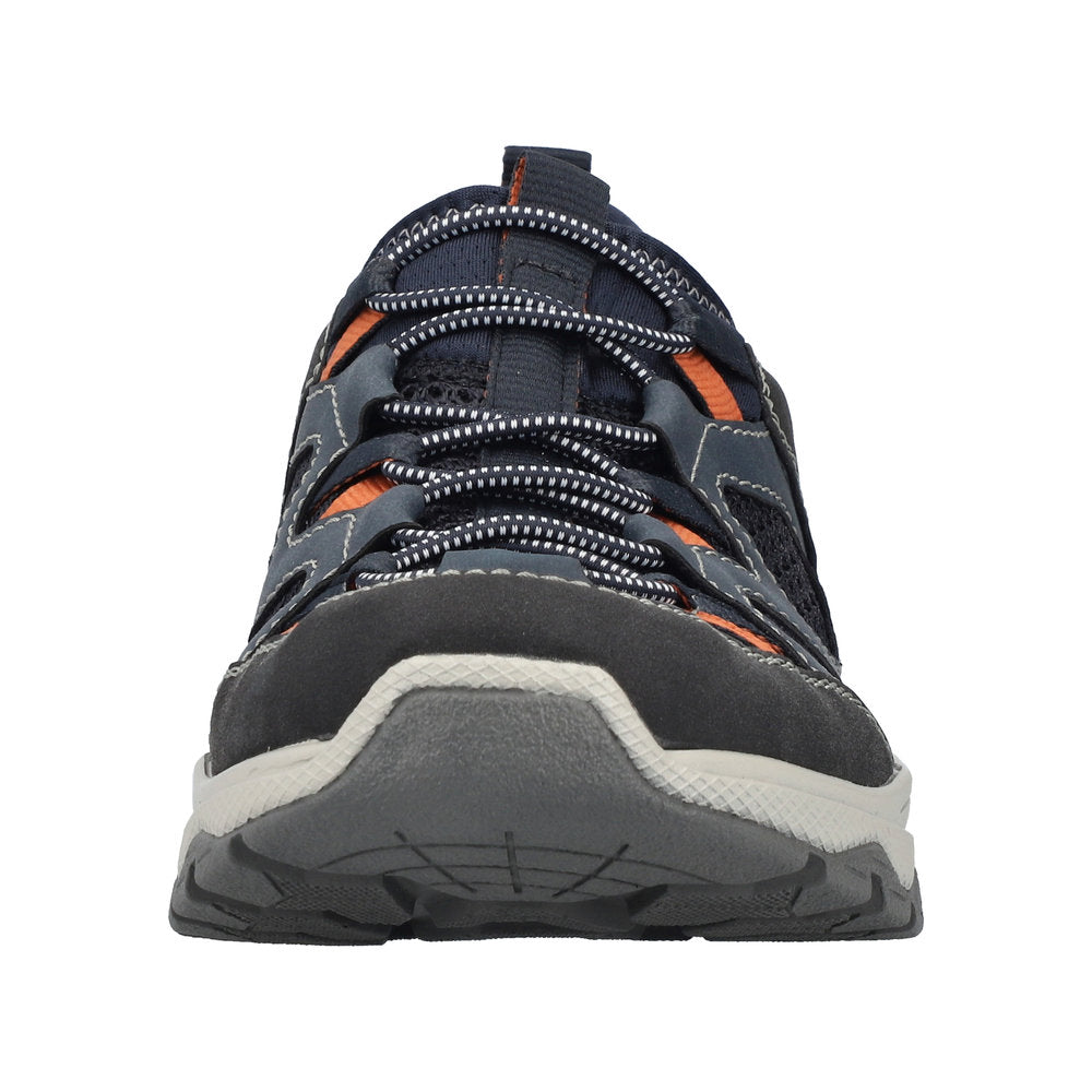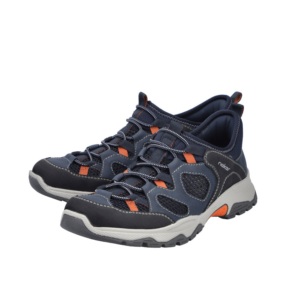 You'll be cool and casual on the move in these blue Rieker shoes. The elastic bands also ensure that the shoe fits at all times. The light and shock-absorbing sole ensures a pleasant wearing sensation. In addition, the extra soft cover sole provides an extra portion of comfort. The comfort width G 1/2 gives you more space in the shoe. Ready2GO: thanks to the slip-on feature, the shoe can be put on super quickly without using your hands. Just slip into it and feel good!